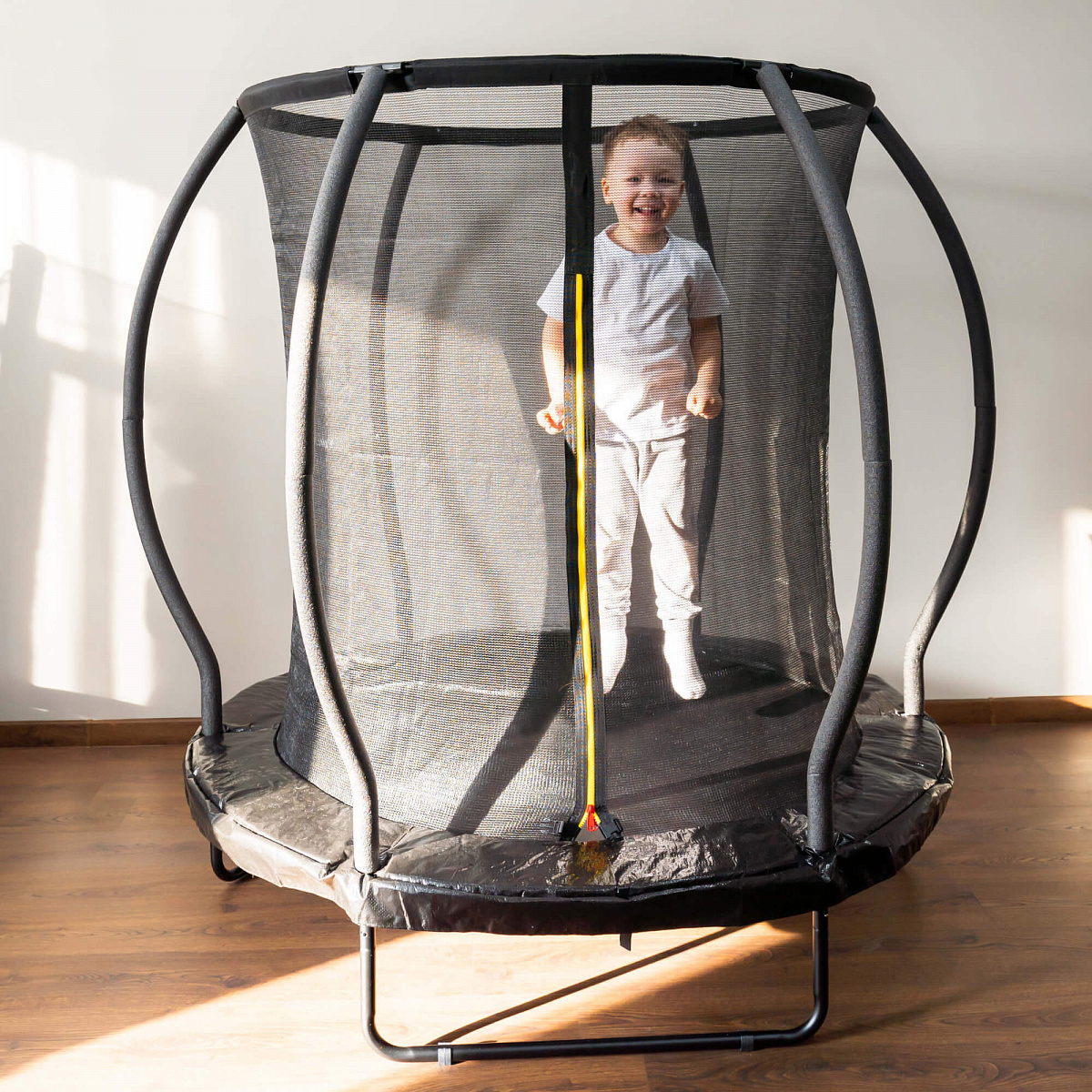Детский каркасный батут с сеткой — идеальное решение для активных и безопасных игр в квартире, в загородном доме или на даче. Использовать его можно как в помещении, так и на улице. Благодаря компактному размеру, батут не займет много места.