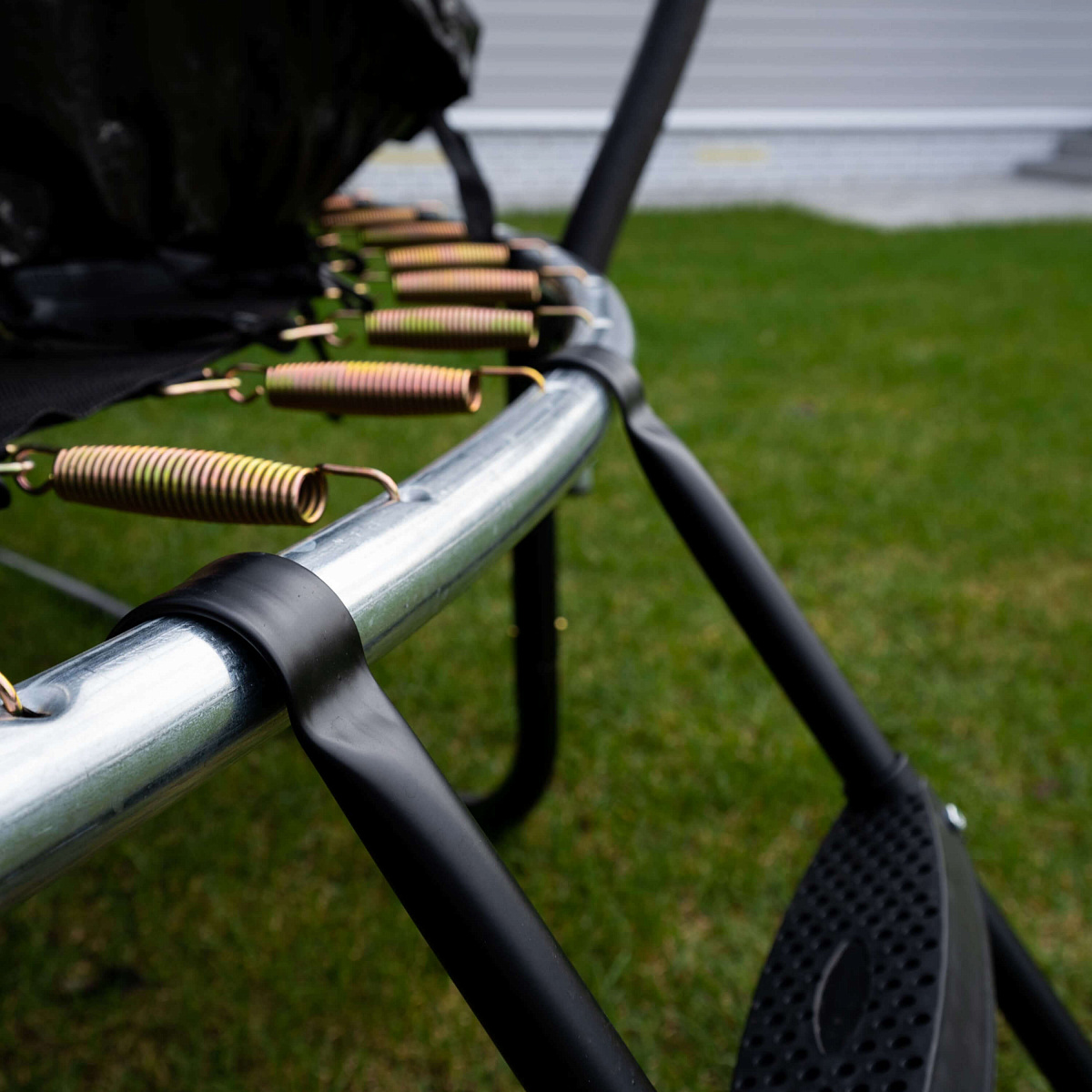 Прочная высокая сетка, тщательно натянутое упругое полотно, закрытые пружины гарантируют максимальную безопасность во время джампинга, качественные материалы обеспечивают долговечность, износостойкость и надежность конструкции.