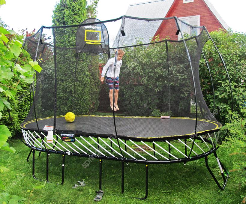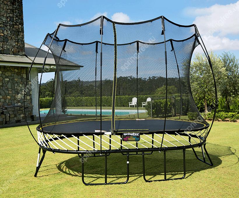 Сеть безопасностиСеть безопасности изготовлена также из высокопрочного стабилизированного полипропилена. Ткется по лицензии и эксклюзивно для Springfree Trampoline на основе тех же технологий, что и рыболовные сети — каждая ячейка сети самостоятельно зафиксирована и при повреждении одной ячейки дальнейшие не «расползаются». Размеры ячеек подобраны таким образом, чтобы пальчики даже самых маленьких детей не могли проникнуть и застрять в них. Сеть растягивается, эффективно улавливая прыгуна, а также обладает амортизирующими свойствами — возвращая ребенка в центр батута.