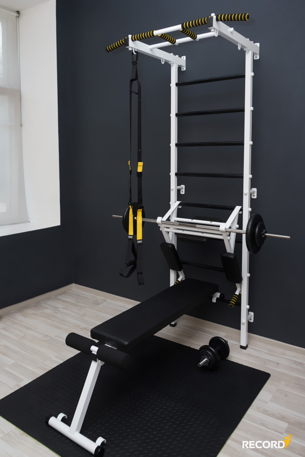 Большой плюс скамьи "Рекорд" - это возможность компактного хранения. Вам достаточно сложить ножку скамьи и повесить конструкцию на одну их перекладин.