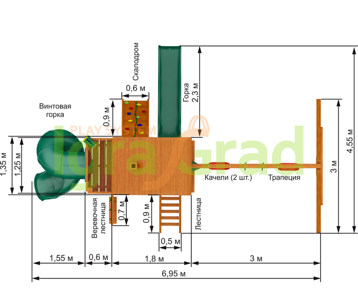 - горка: 300*500*2900, 1 шт., 22,00 кг. (транспортировка только в жёсткой упаковке!)