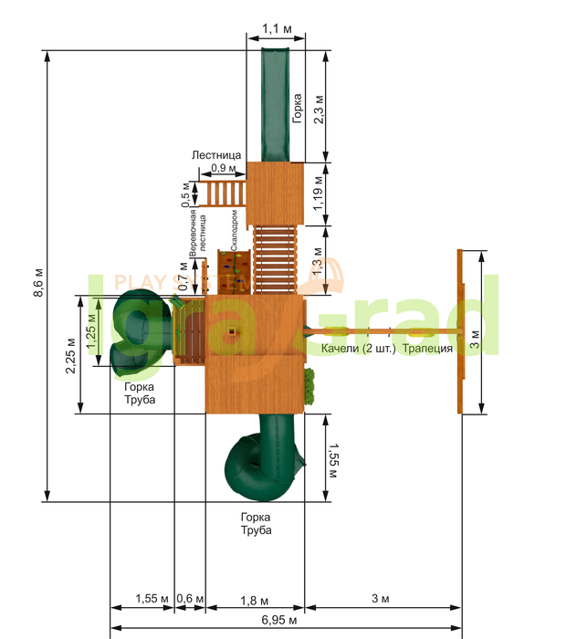 - горка: 300*500*2900, 1 шт., 22,00 кг. (транспортировка только в жёсткой упаковке!)