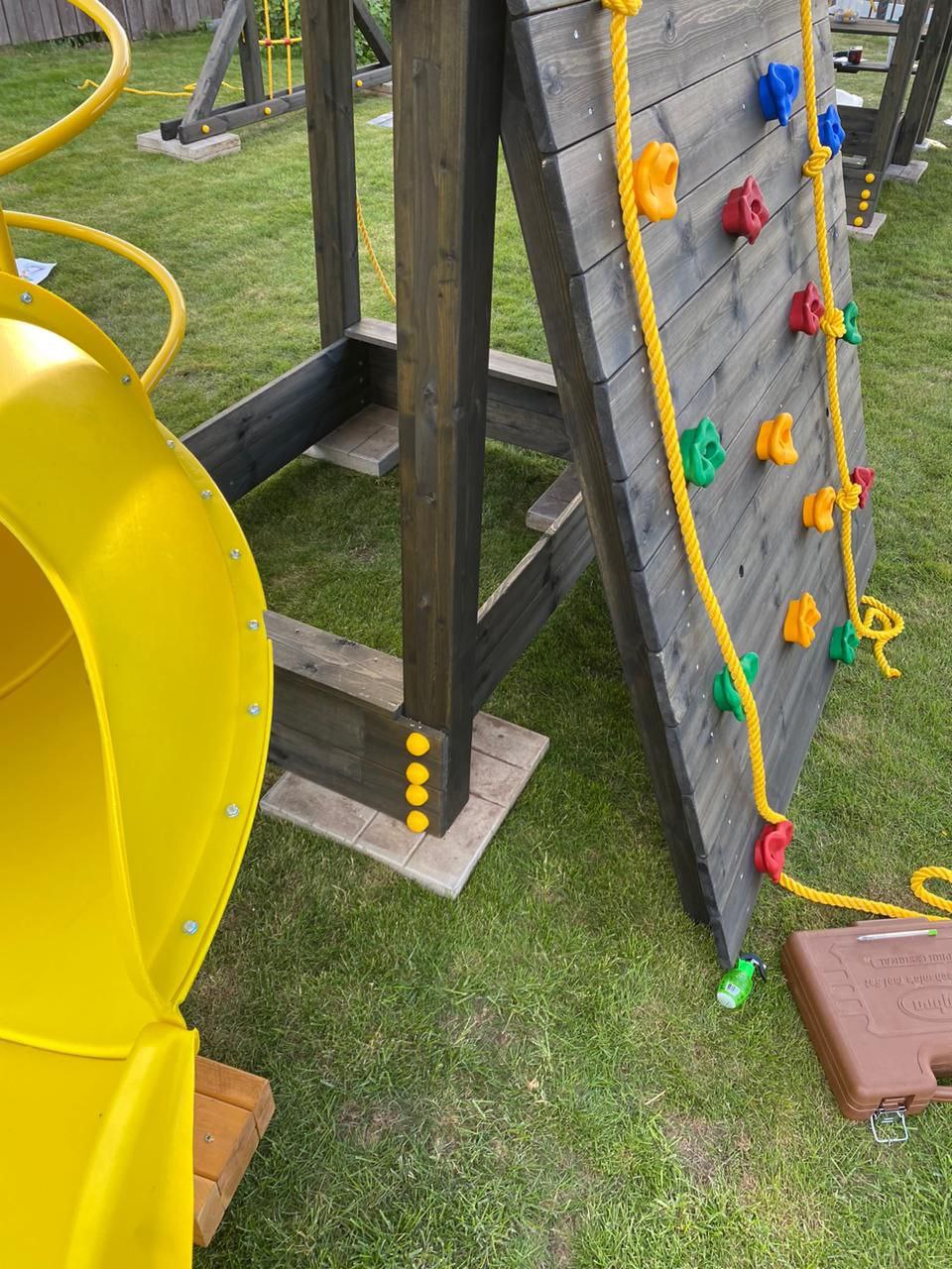 Обращаем Ваше внимание, что фактический цвет детской площадки может отличаться от представленных фото на сайте. Специфика окраски нетоксичными пропитками и красителями допускает отклонения в цветовой гамме отгружаемых изделий. Также обратите внимание, что фактический цвет может отличаться из-за цветопередачи устройства на котором Вы смотрите фото.