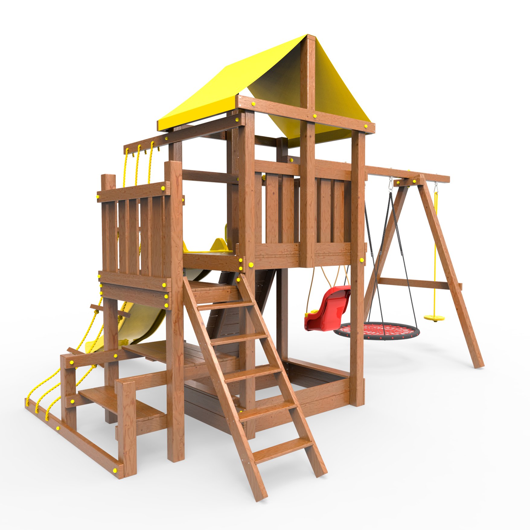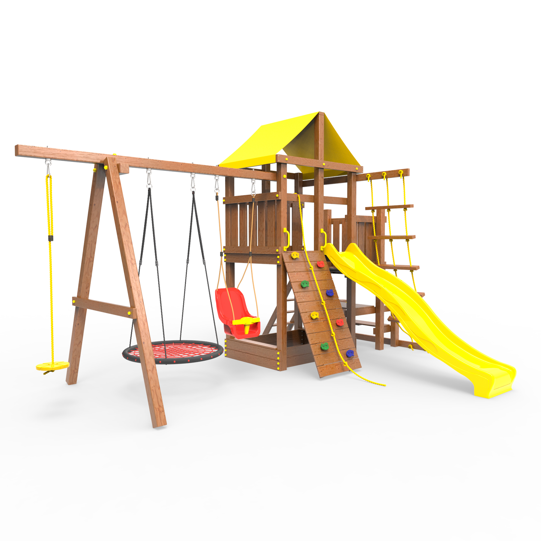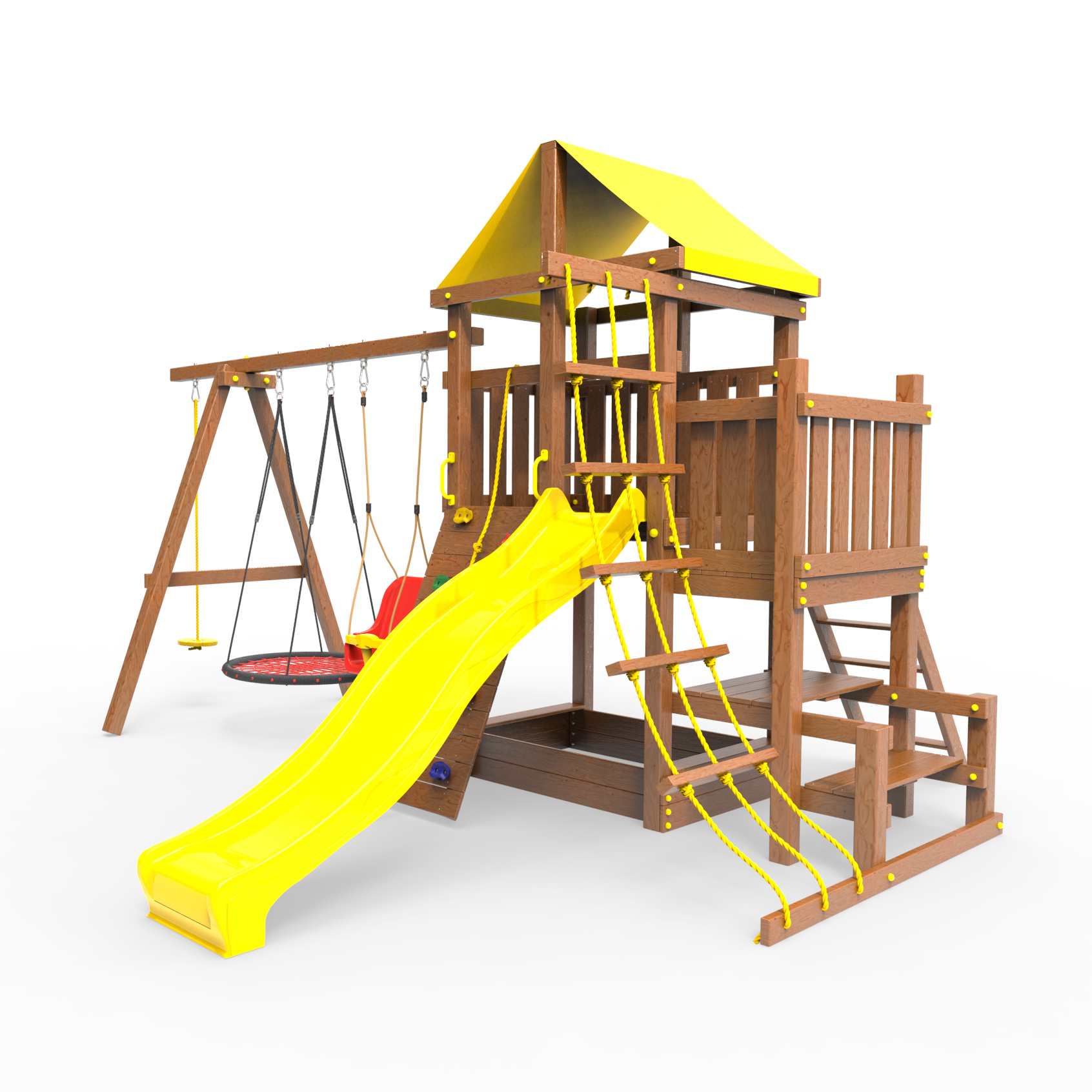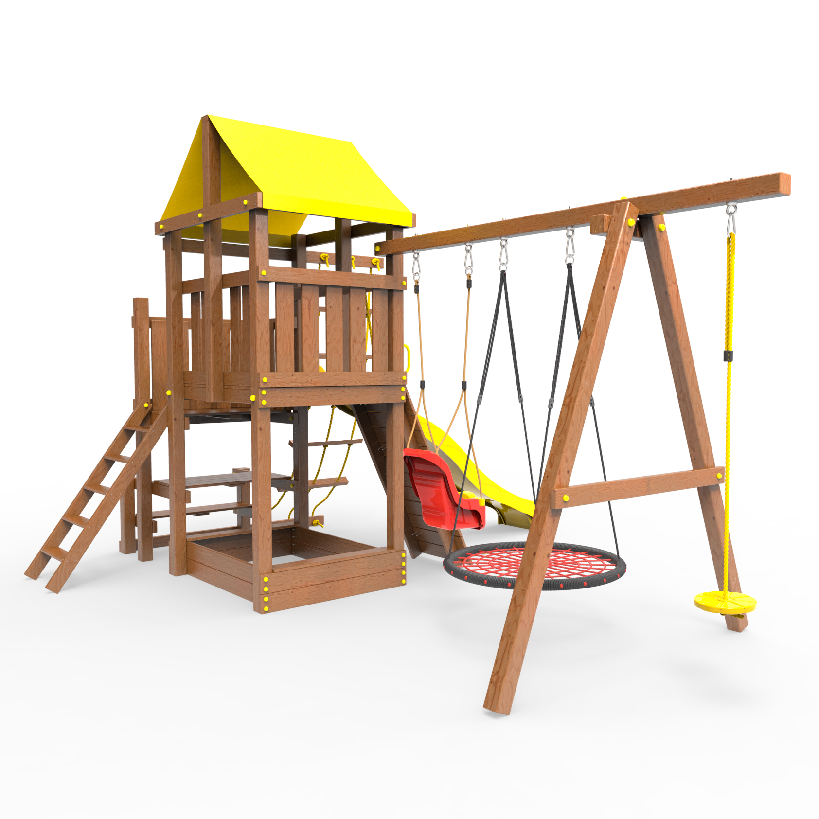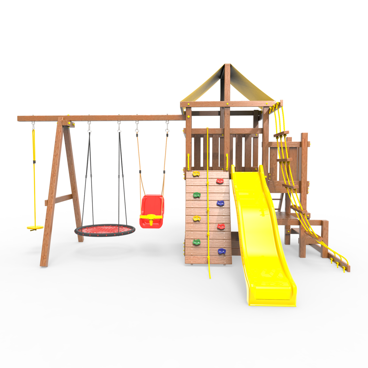 | Комплектация | Домик|Песочница|Лестница|Шторм-трап|Скалодром|Балкон|Столик с лавочками|Горка|Качели |