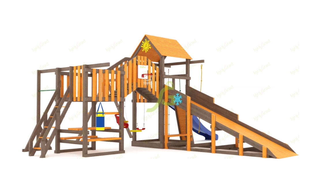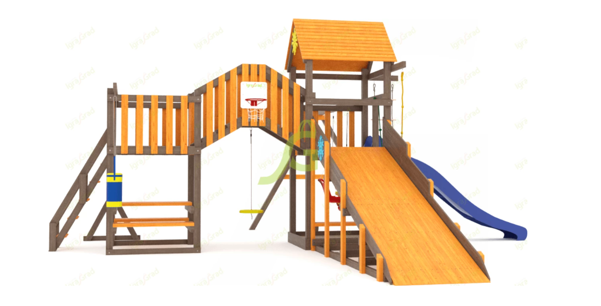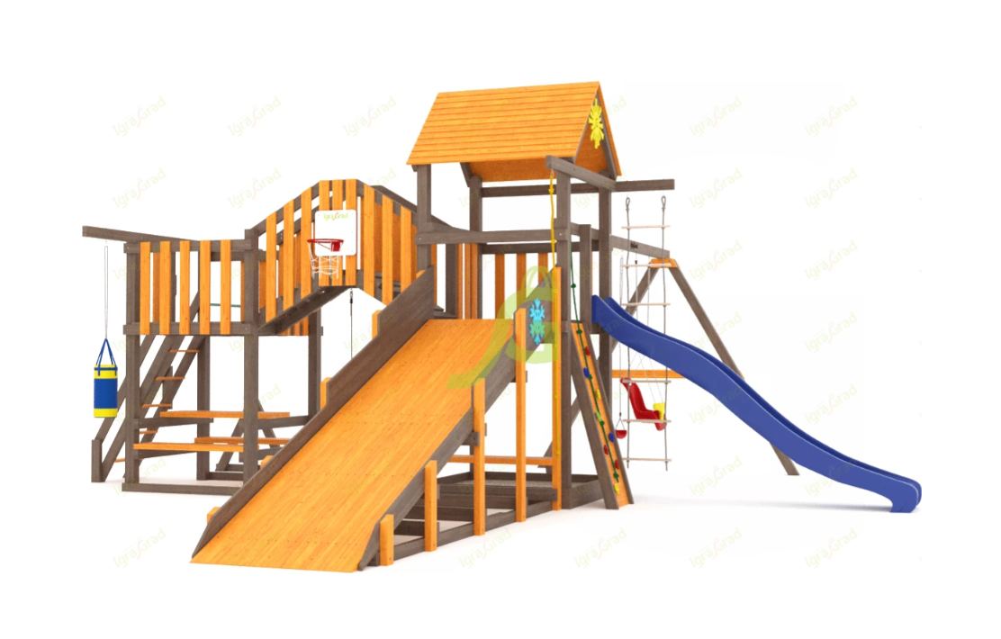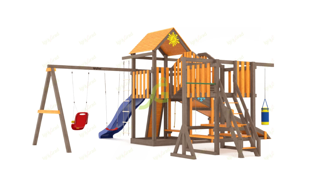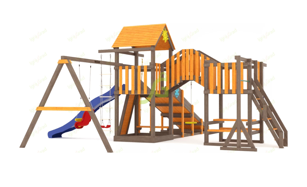 По желанию клиента игровая площадка может быть укомплектована дополнительными элементами. Можно заменить обычные качели на качели-гнездо, которые очень удобны в использовании. Наши специалисты обсудят с вами все детали заказа и быстро оформят заявку.
