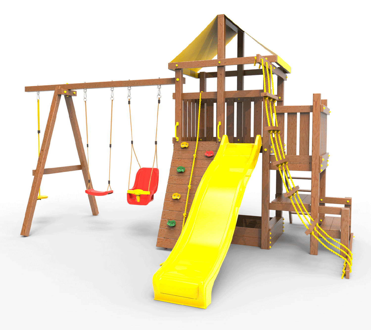 Обращаем Ваше внимание, что фактический цвет детской площадки может отличаться от представленных фото на сайте. Специфика окраски нетоксичными пропитками и красителями допускает отклонения в цветовой гамме отгружаемых изделий. Также обратите внимание, что фактический цвет может отличаться из-за цветопередачи устройства на котором Вы смотрите фото.