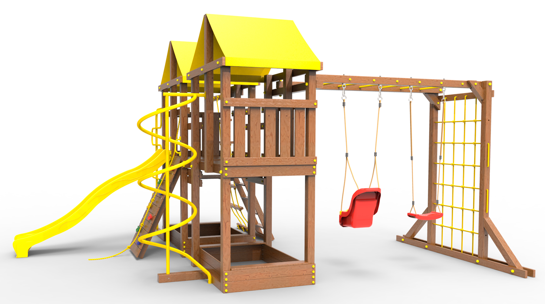 Обращаем Ваше внимание, что фактический цвет детской площадки может отличаться от представленных фото на сайте. Специфика окраски нетоксичными пропитками и красителями допускает отклонения в цветовой гамме отгружаемых изделий. Также обратите внимание, что фактический цвет может отличаться из-за цветопередачи устройства на котором Вы смотрите фото.