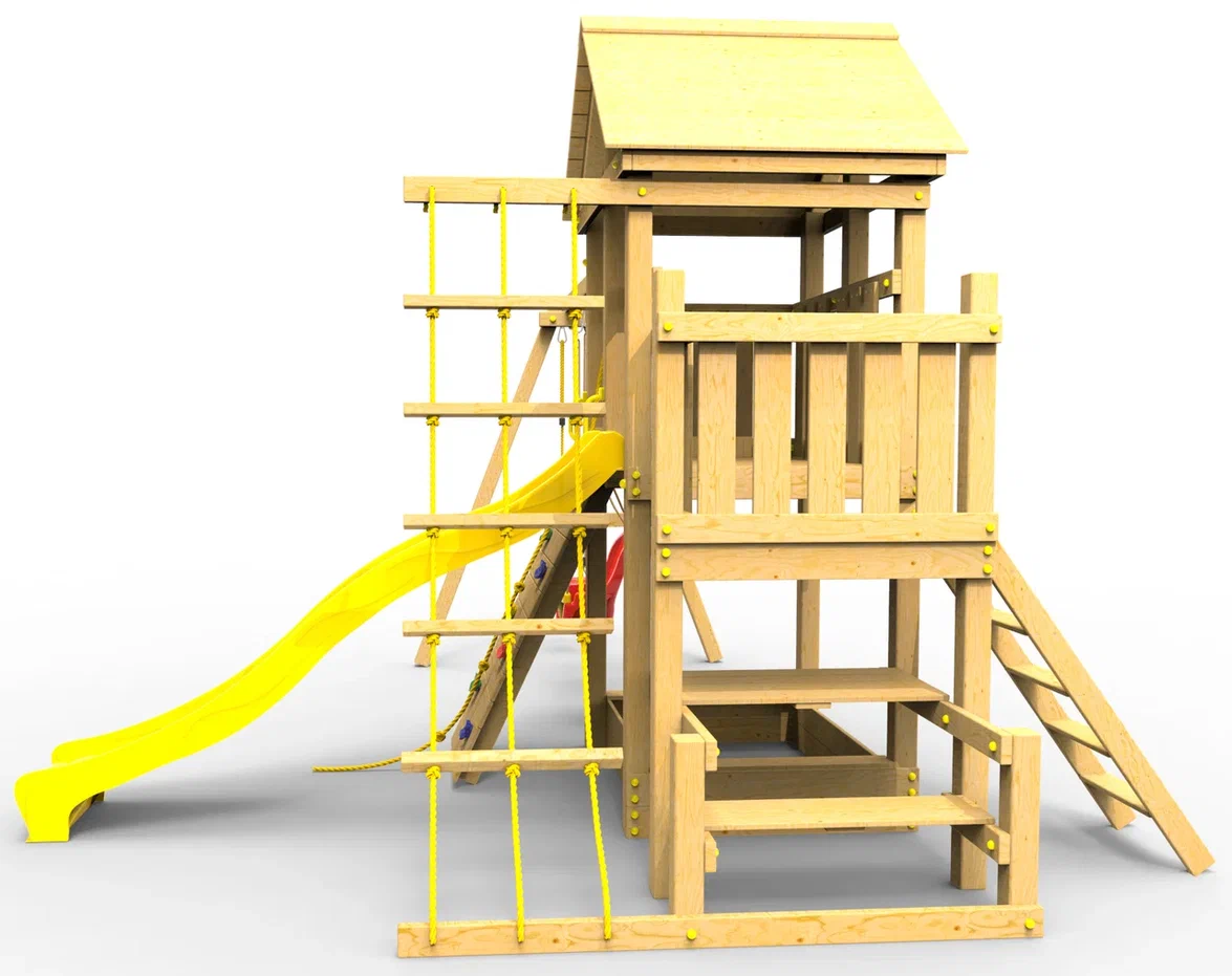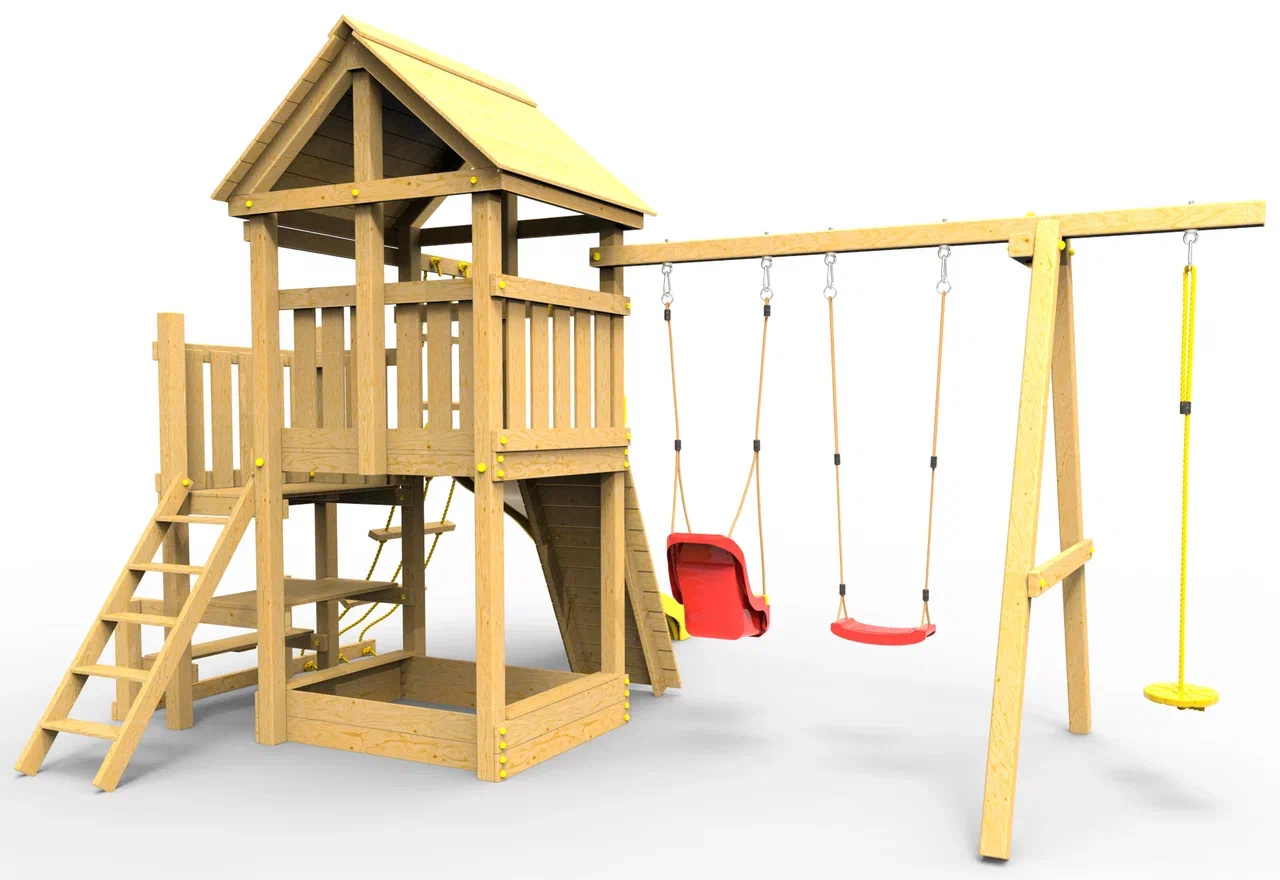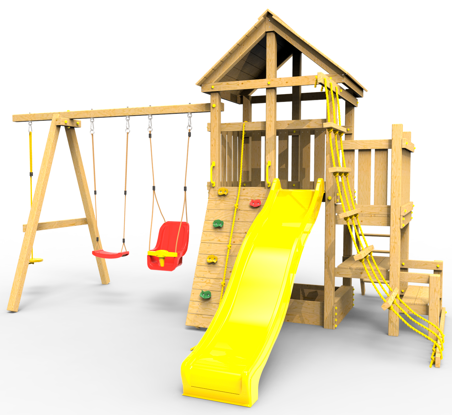 ● деревянная крыша ● трап 2м с канатом ● поручни для лестницы ● диван на цепях двухместный ● столик в песочницу