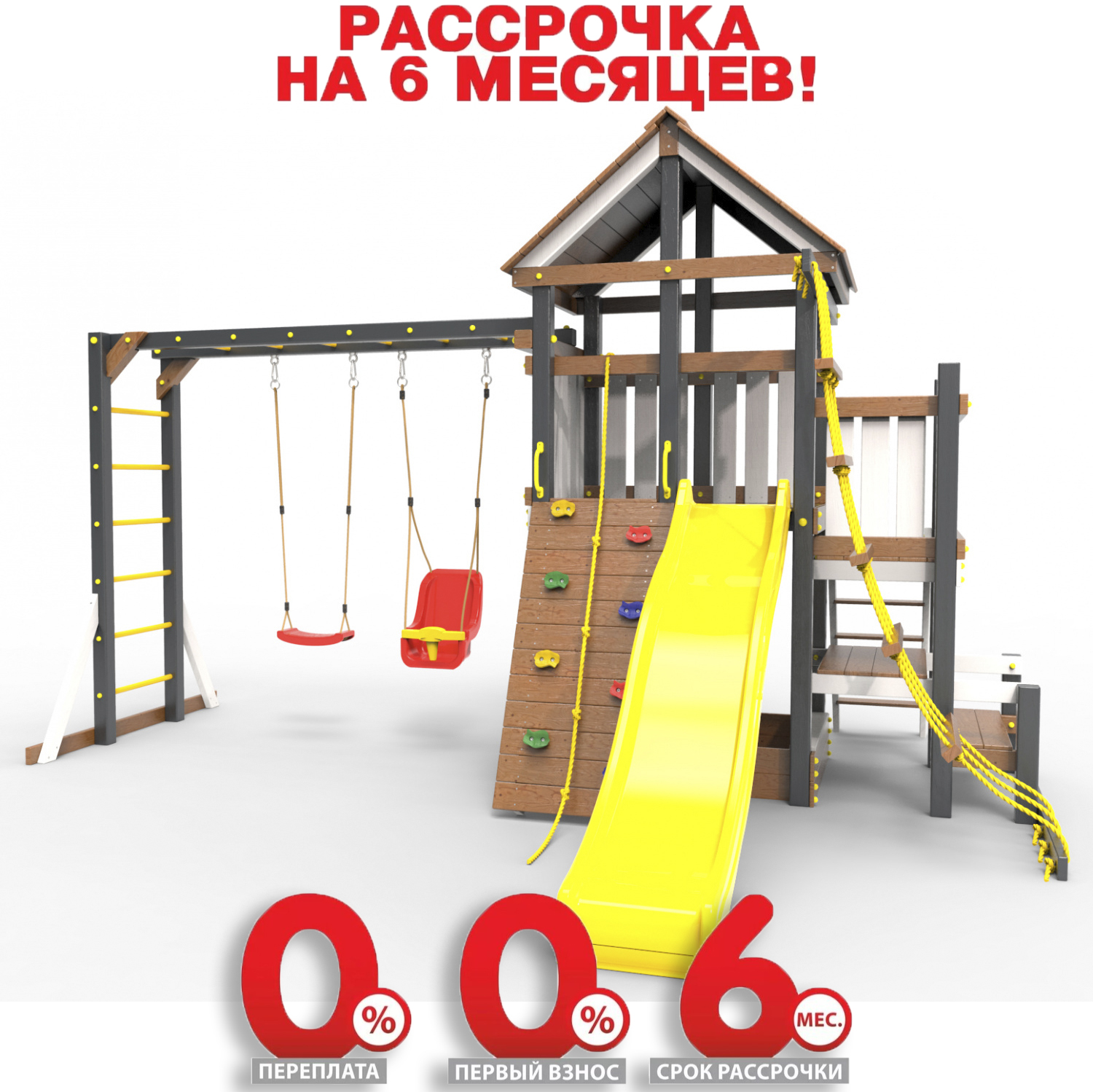 Обращаем Ваше внимание, что фактический цвет детской площадки может отличаться от представленных фото на сайте. Специфика окраски нетоксичными пропитками и красителями допускает отклонения в цветовой гамме отгружаемых изделий. Также обратите внимание, что фактический цвет может отличаться из-за цветопередачи устройства на котором Вы смотрите фото.