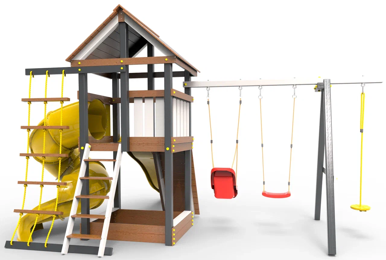 Обращаем Ваше внимание, что фактический цвет детской площадки может отличаться от представленных фото на сайте. Специфика окраски нетоксичными пропитками и красителями допускает отклонения в цветовой гамме отгружаемых изделий. Также обратите внимание, что фактический цвет может отличаться из-за цветопередачи устройства на котором Вы смотрите фото.