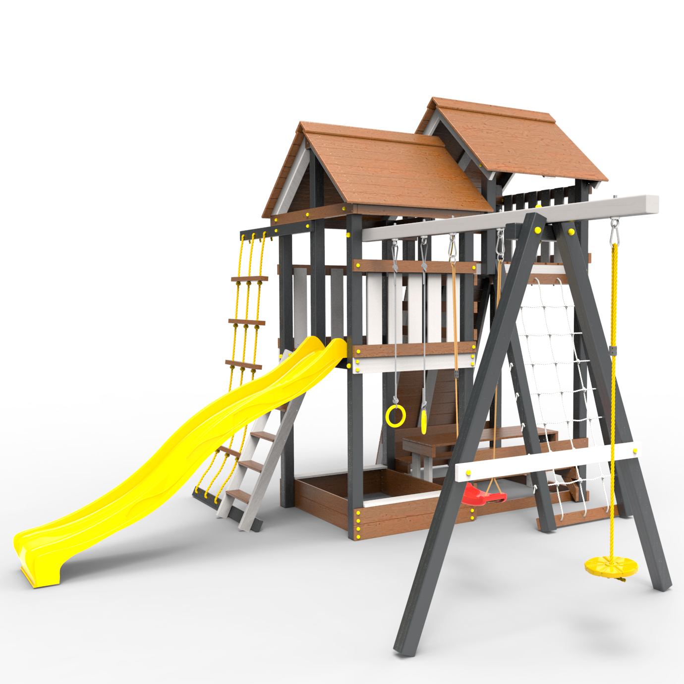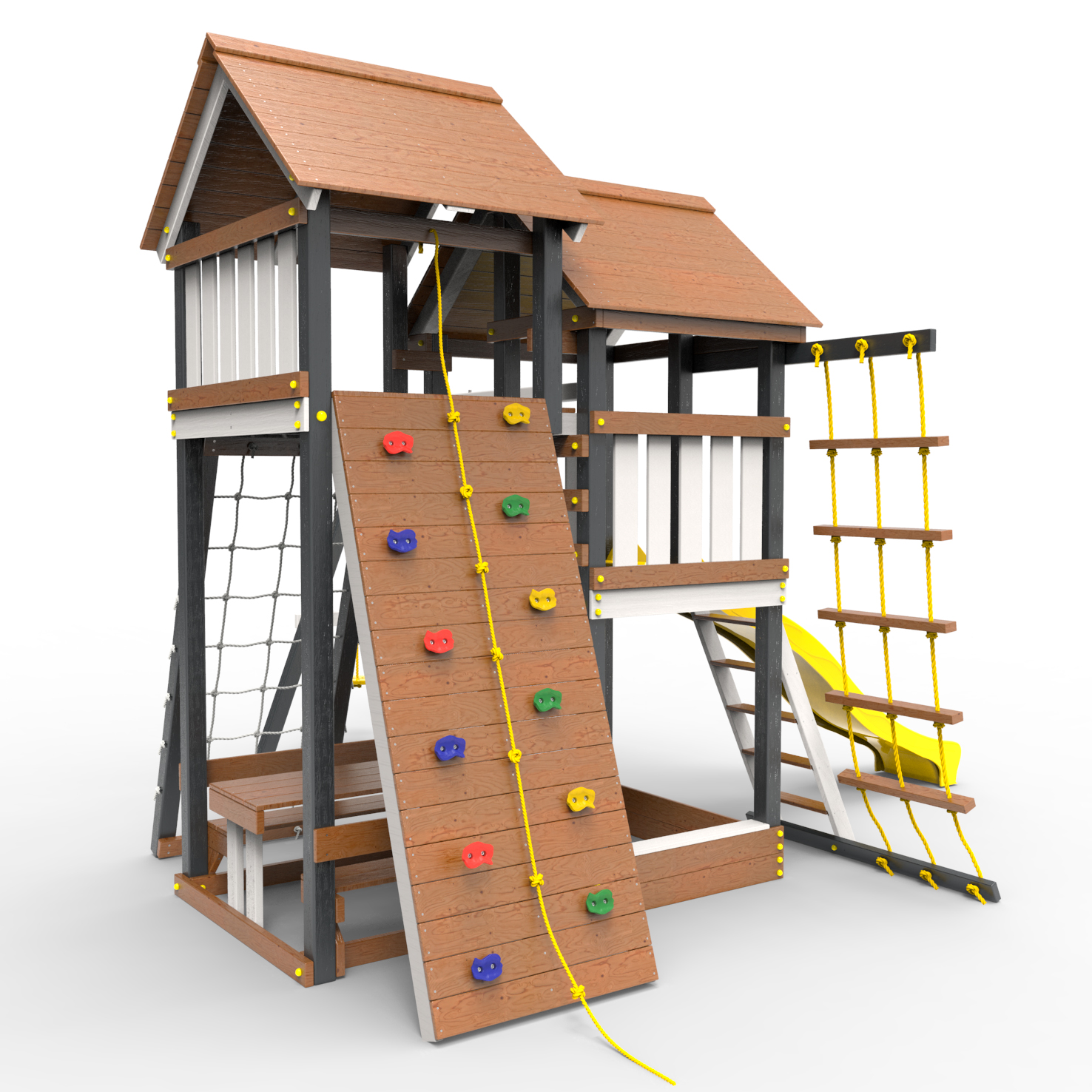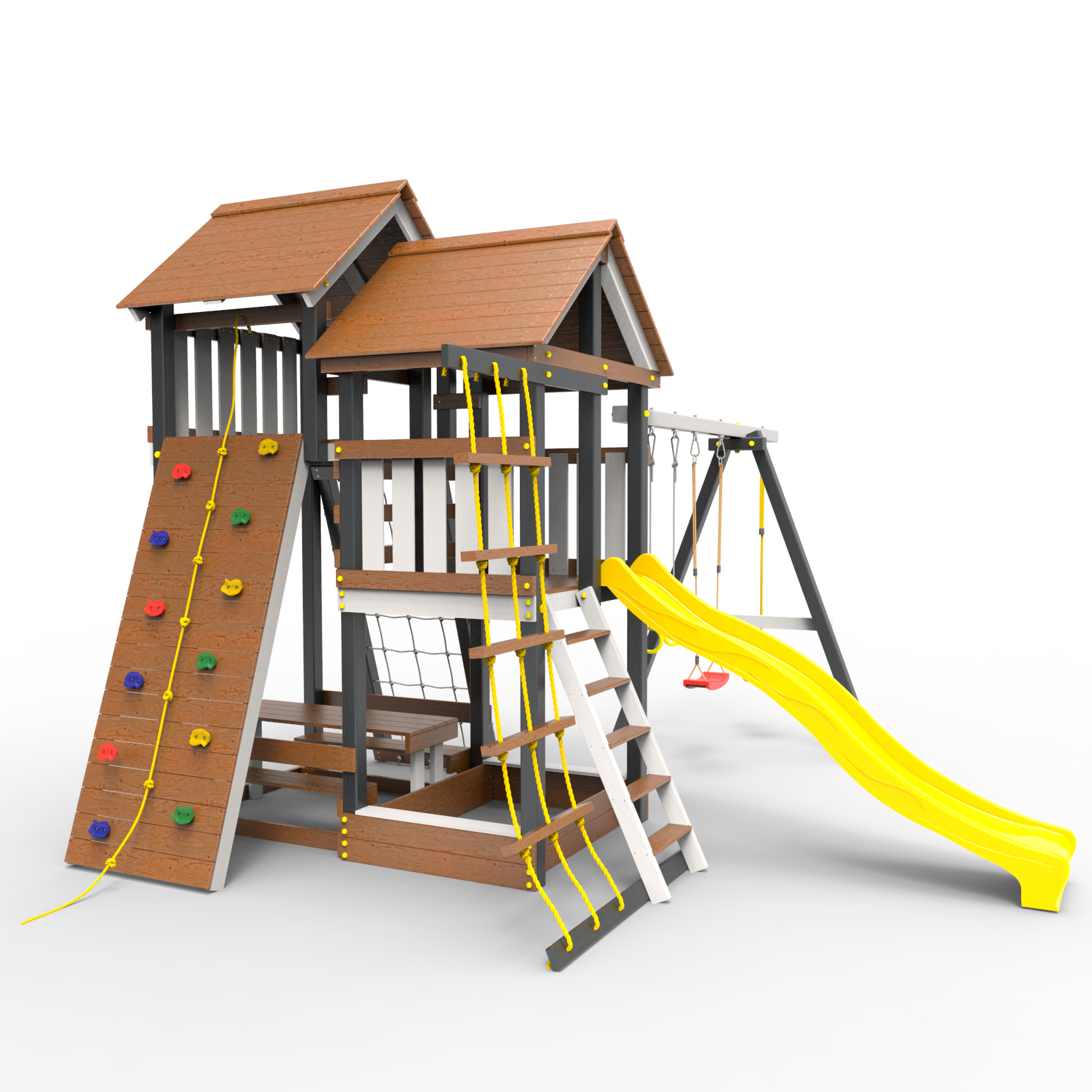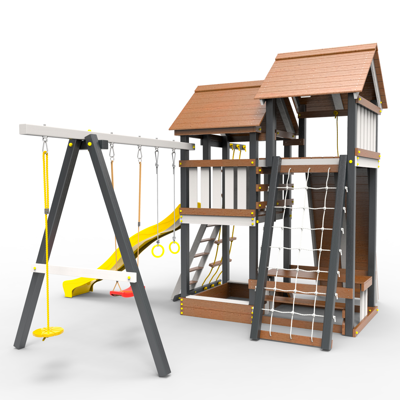 Обращаем Ваше внимание, что фактический цвет детской площадки может отличаться от представленных фото на сайте. Специфика окраски нетоксичными пропитками и красителями допускает отклонения в цветовой гамме отгружаемых изделий. Также обратите внимание, что фактический цвет может отличаться из-за цветопередачи устройства на котором Вы смотрите фото.