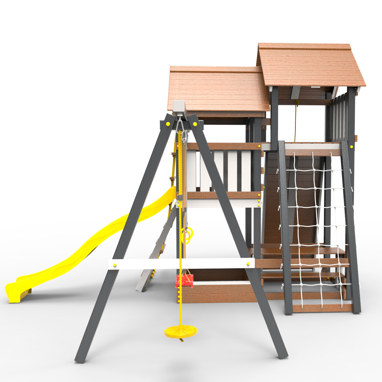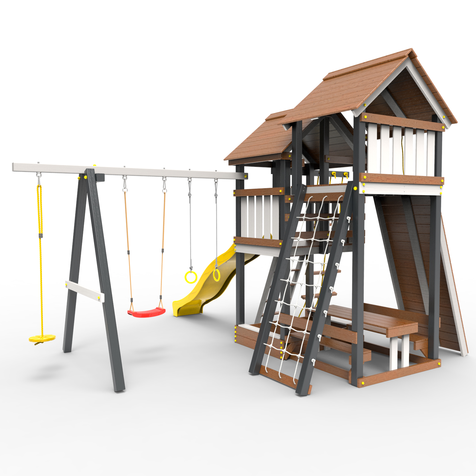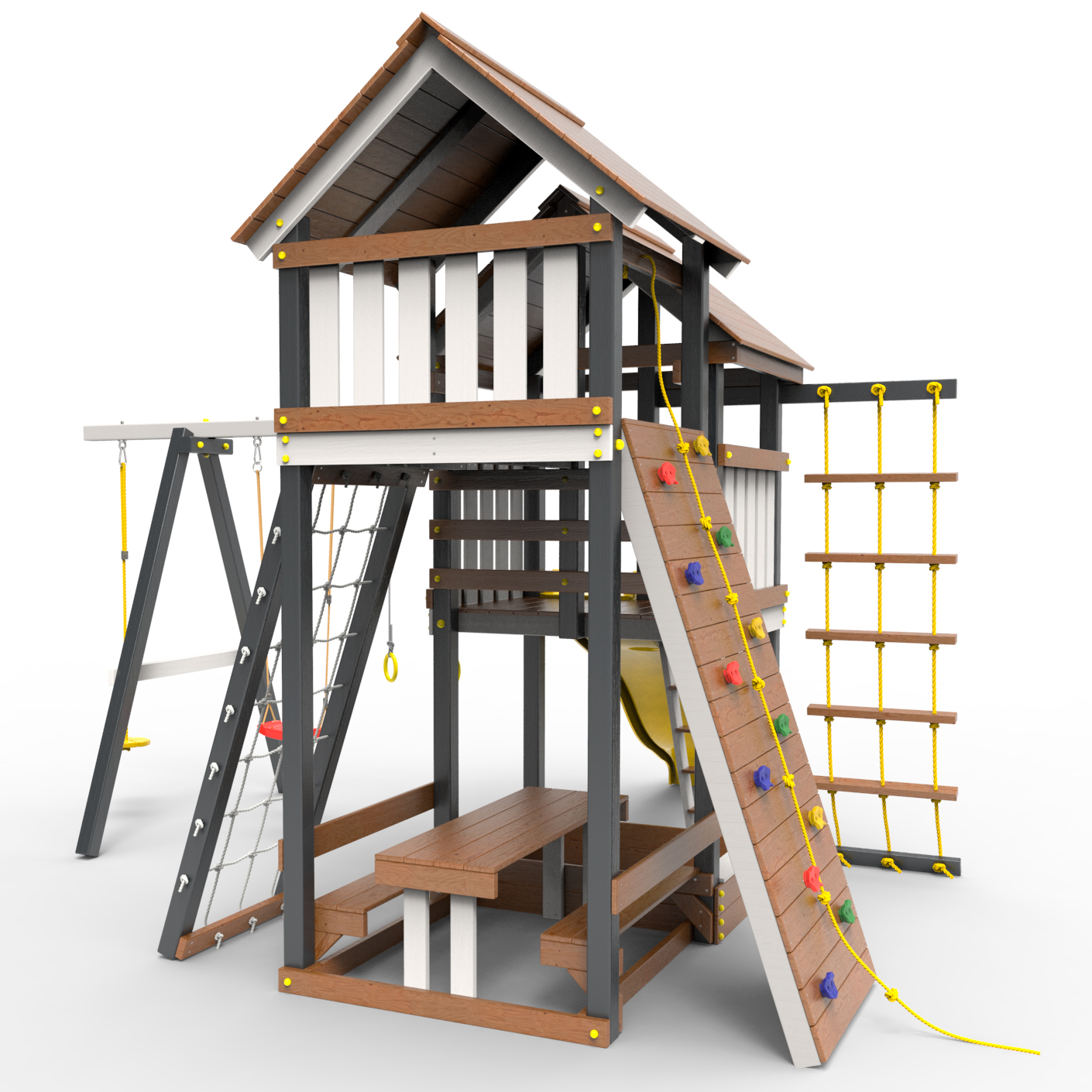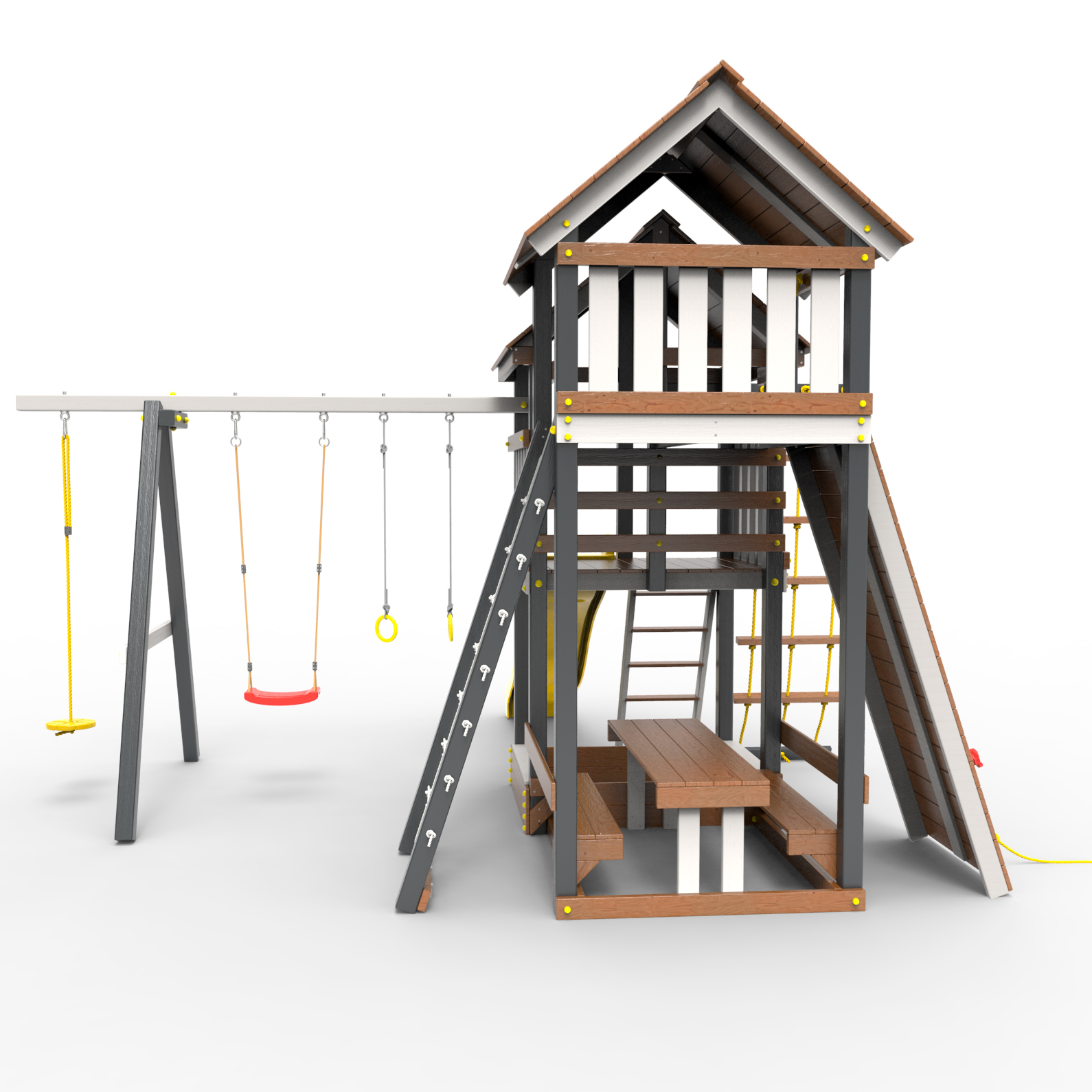 Обращаем Ваше внимание, что фактический цвет детской площадки может отличаться от представленных фото на сайте. Специфика окраски нетоксичными пропитками и красителями допускает отклонения в цветовой гамме отгружаемых изделий. Также обратите внимание, что фактический цвет может отличаться из-за цветопередачи устройства на котором Вы смотрите фото.