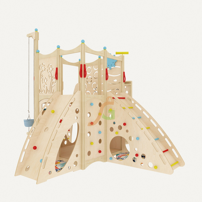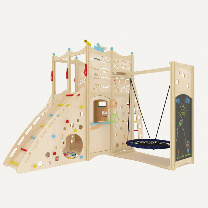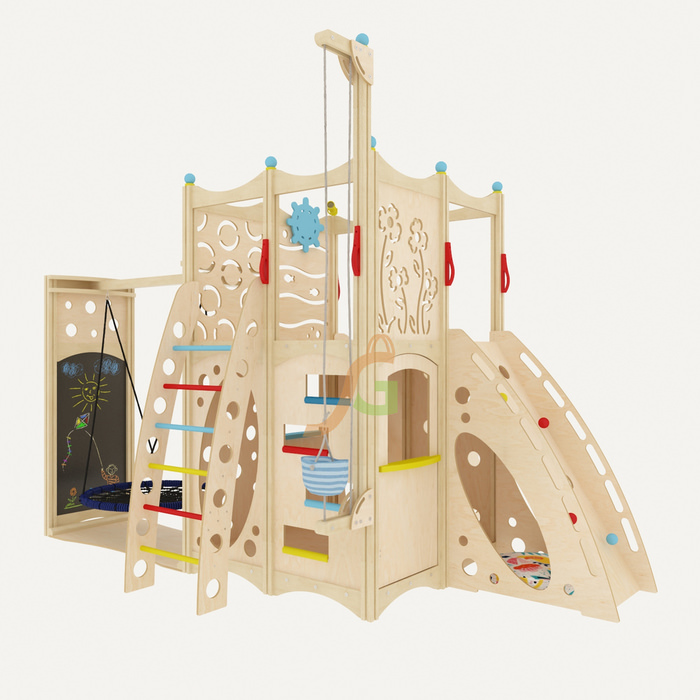 Конструкция изготовлена из фанеры берёзы толщиной 15 мм. Она прошла тщательную обработку, для длительной эксплуатации и сохранения эстетичности покрывается масляной пропиткой. Используемые средства не выделяют токсины. Дети будут с удовольствием проводить время в игровом домике, чувствуя себя прекрасно. Ведь для декорирования подобрано минимум оттенков, сохранена естественность материалов.