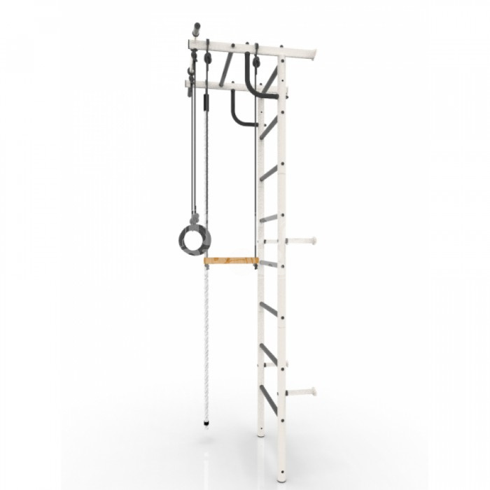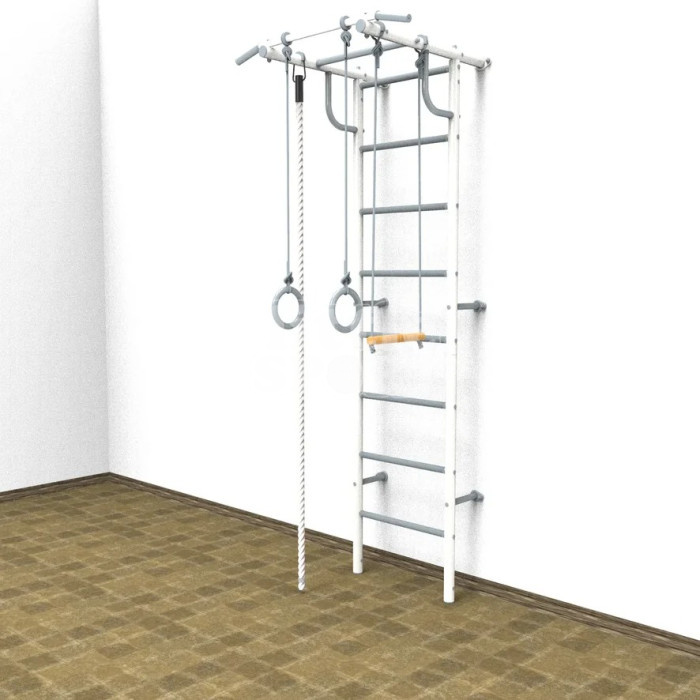 - Комплектация: шведская стенка, кольца гимнастические, канат, трапеция, веревочная лестница