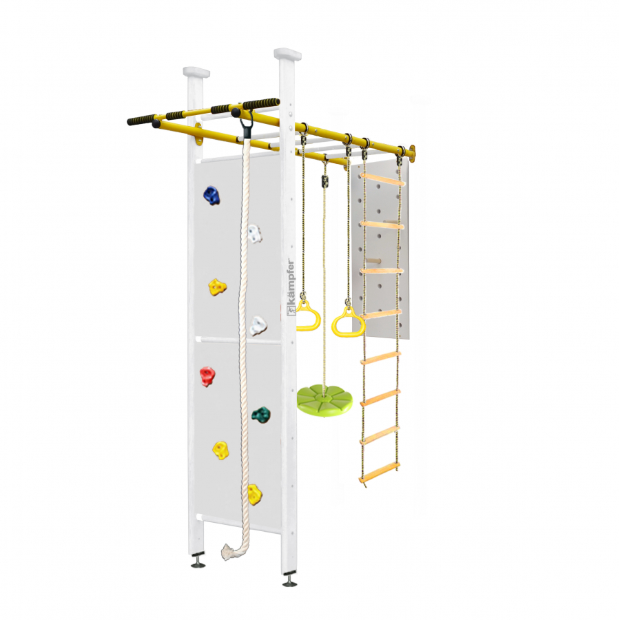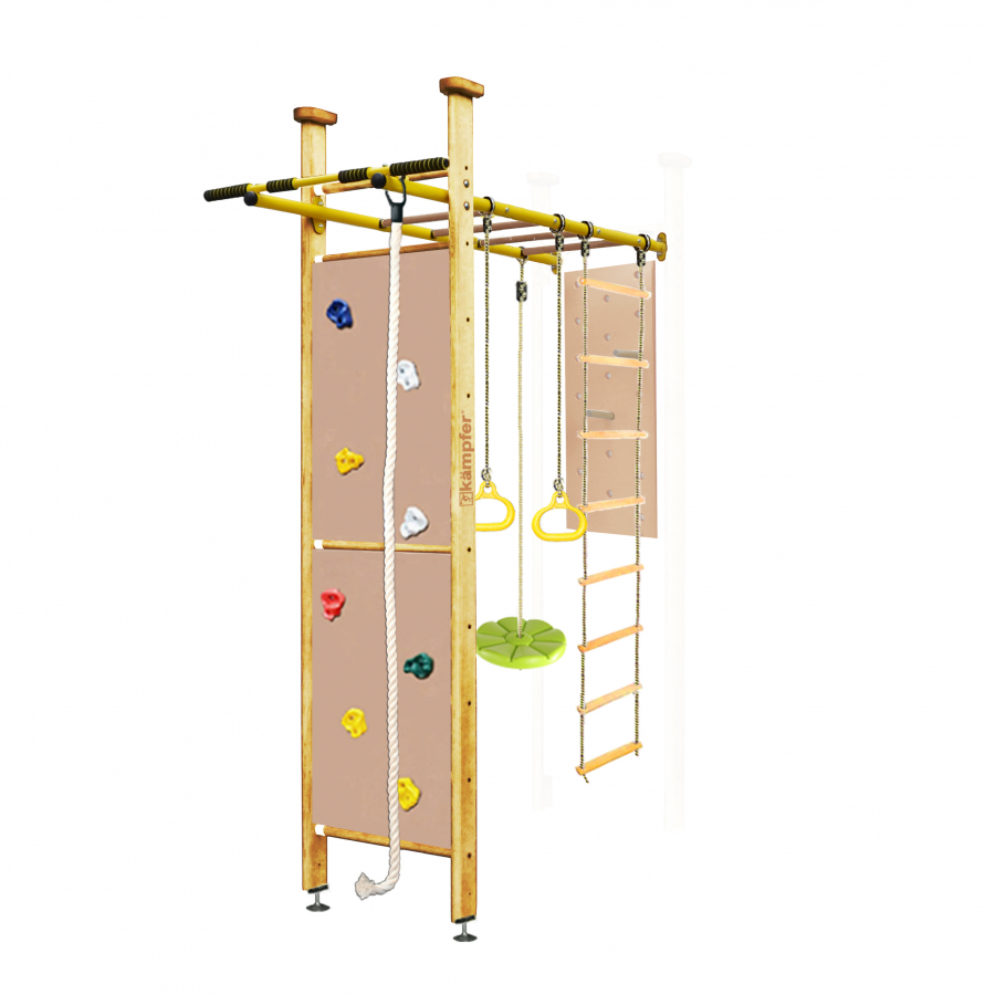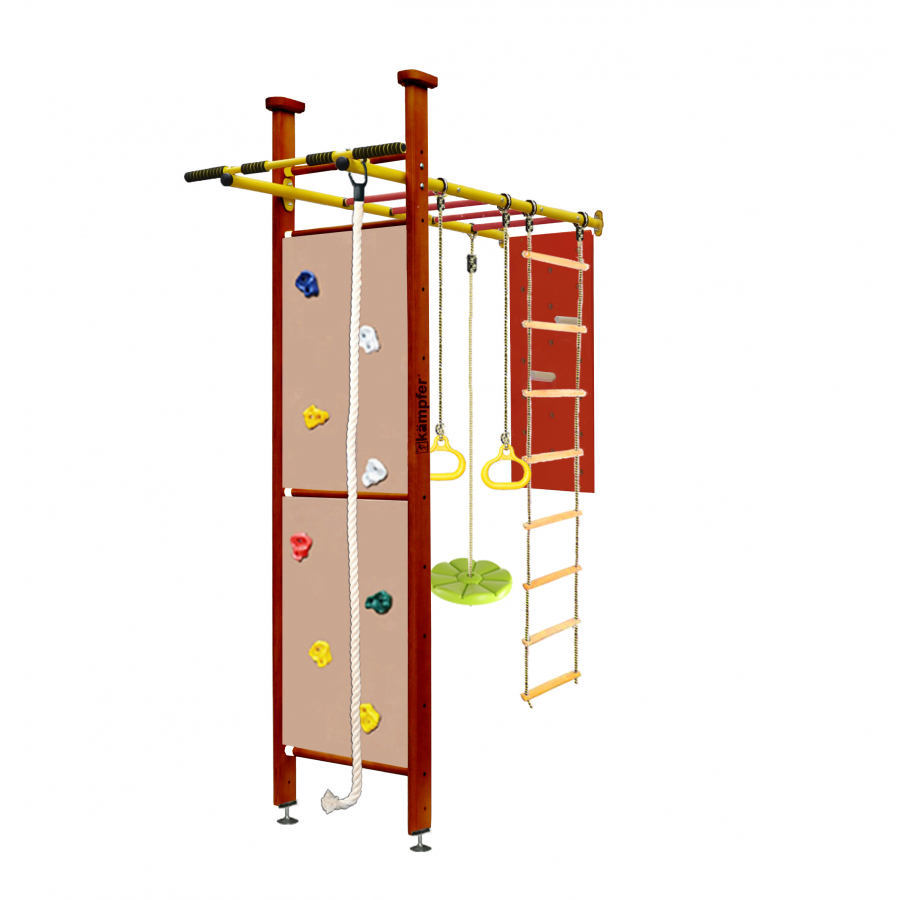 Также есть возможность расширить стандартную комплектацию и приобрести дополнительное навесное оборудование брусья, баскетбольное кольцо, лиану, качели, которые превратят Ваш игровой комплекс в спортивный зал для всей семьи.