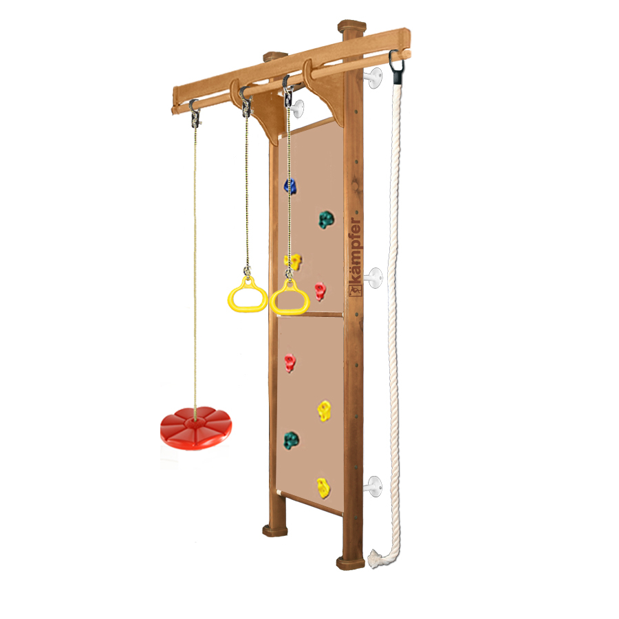 Также есть возможность расширить стандартную комплектацию и приобрести дополнительное навесное оборудование трапецию, веревочную лестницу, которые превратят Ваш ДСК в спортивный зал для всей семьи.