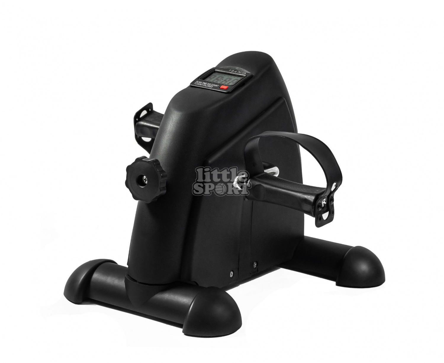 Компьютер с ЖК-дисплеем отображает следующие параметры тренировки: время, расстояние, сканирование, количество оборотов, общее количество оборотов, калории. Питание компьютера от ААА батарейки 1.5В, входящей в комплект.